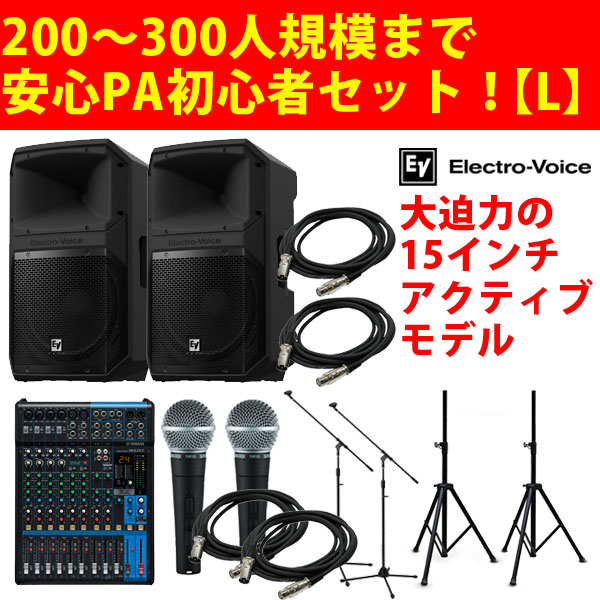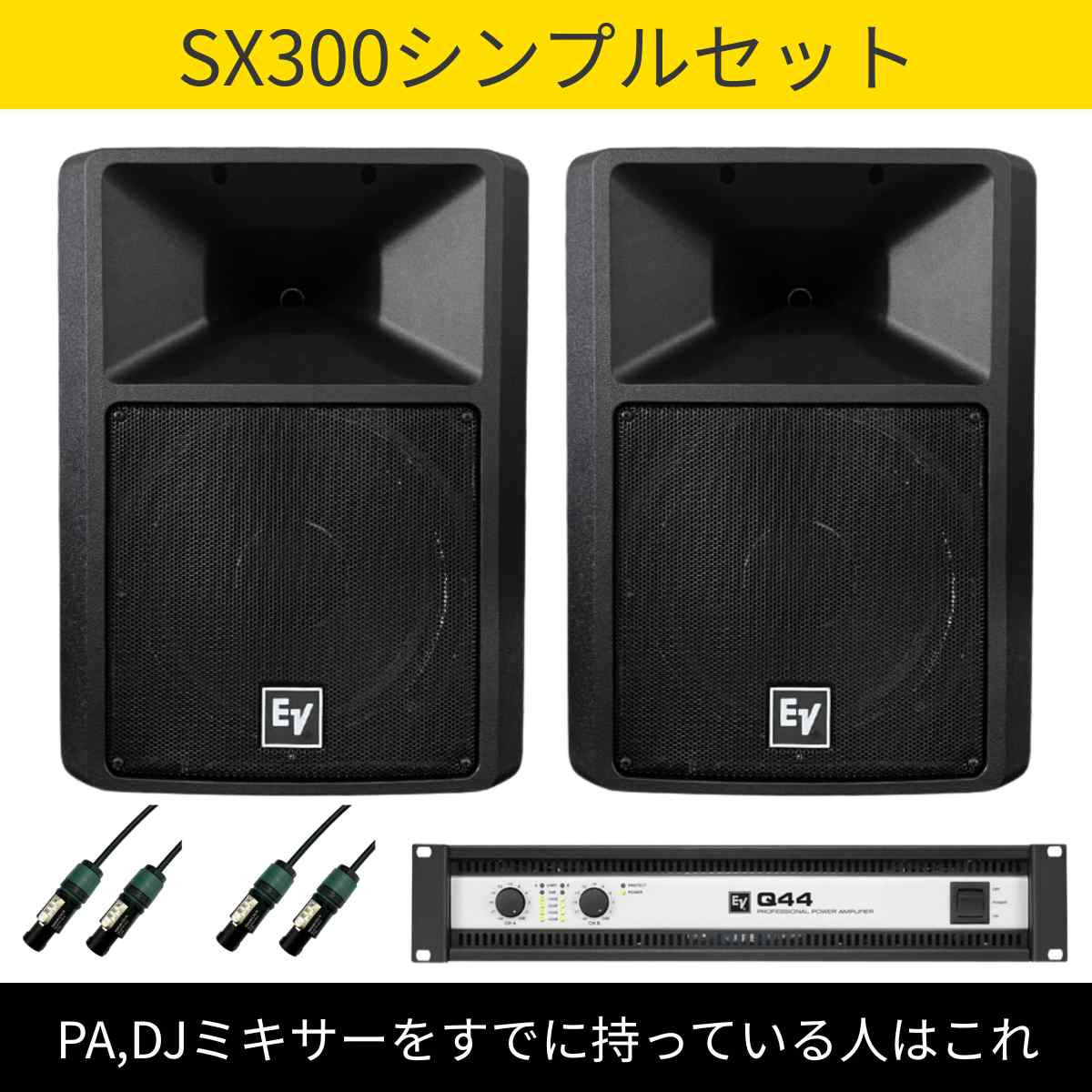 ハイパワーアンプで中規模~大規模野外フェスまでしっかり使える!SX300ハイパワー完璧PAセット!(SX300×4/Q99/STS77×4/MG10XUF/XLRケーブル5m×2/スピコン×4) [p18630]