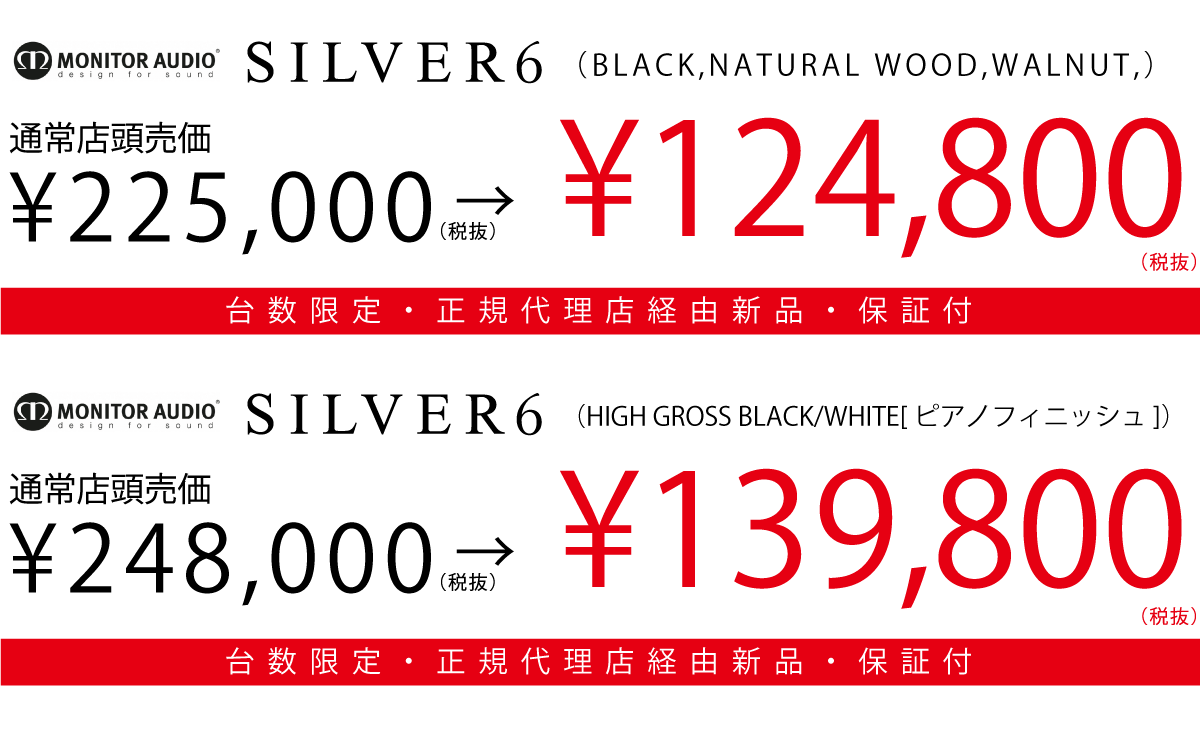 Monitor AudioのSILVERシリーズが台数限定で旧製品が全品最大45%OFF。しかも全国送料無料。完全早い者勝ちのウルトラセール。