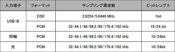 ● USB-B/同軸デジタル/光デジタル入力 対応フォーマット