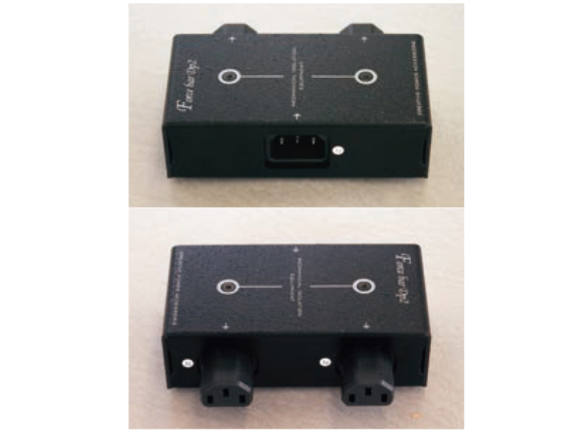更には、Force barS1Pの前段にForce bar3P(出力コンセント3口+連結コンセント)を連結すれば、同一の電源ライン上に、ノイズフィルタ未経由および経由の2種類の電力供給が可能になり、デジ/アナ分離、小信号/大電力機器の分離がいとも簡単にできるなど、その発展性と拡張性は電源タップの世界にイノベーションをもたらすに至っています。