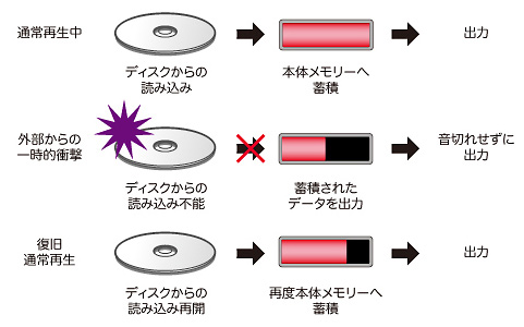 ・ 振動などによる音飛びを回避するショックプルーフメモリーを搭載