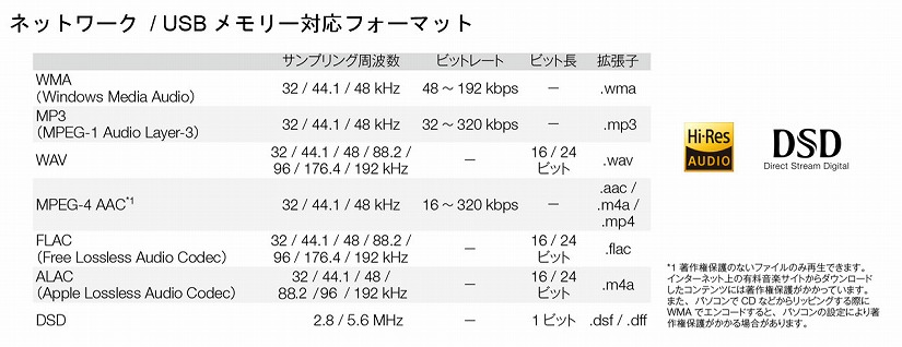 - その他の端子:ネットワーク ×1、USB-A ×1(リア)、FMアンテナ入力×1、AMアンテナ入力×1