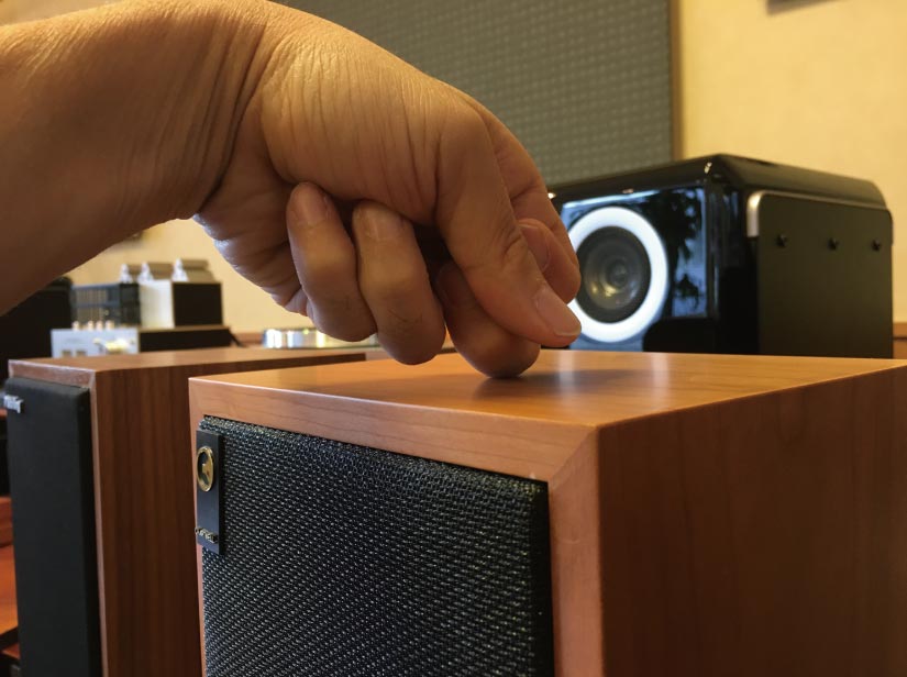 試しにスピーカーの上側を指でコツコツと鳴らしてみましたが、「コッコッ」「ケッケッ」というくらいに音の高さが違い、CHARTWELLの方が高い音がします。
