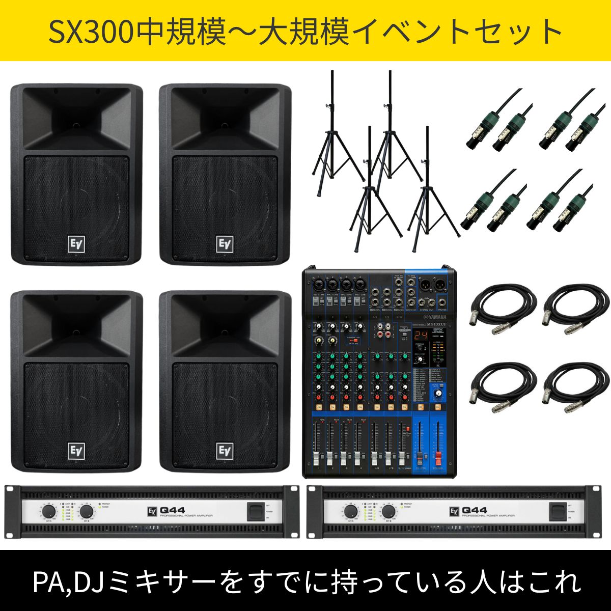 盆踊りやお祭り、中規模から大規模野外フェスまでしっかり使える!SX300完璧PAセット!(SX300×4/Q44II×2/STS77×4/MG10XUF/XLRケーブル5m×4/スピコン×4) [p18624]