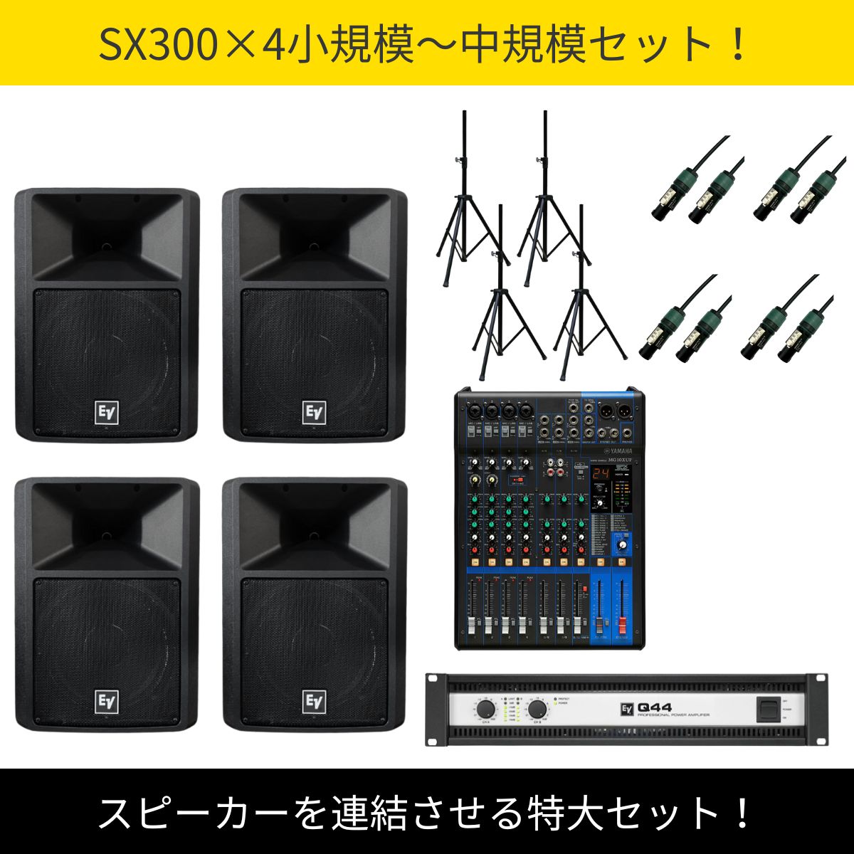 盆踊りやお祭り、小規模から中規模野外フェスまでしっかり使える!SX300完璧PAセット!(SX300×4/Q44II/STS77×4/MG10XUF/XLRケーブル5m×2/スピコン×4) [p18627]