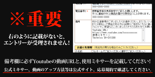 ・YOUTUBEの動画応募URL(ビデオ審査用動画)がない場合はエントリーできません。(ショッピングカート備考欄に記載してください。)