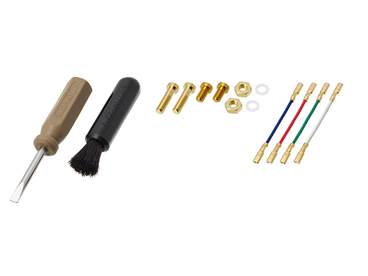 付属品:カートリッジ取り付けビス 5mm×2 10mm×2、ワッシャー×2、六角ナット×2、 非磁性ドライバー×1、ブラシ×1、リード線セット×1