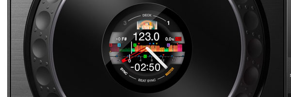 再生時間、BPM、波形などの楽曲情報や、現在再生位置から「HOT CUE」や「LOOP」の設定ポイントまでの距離を小節単位で表示する「CUE SCOPE」など必要な情報を手元で把握でき、ミックスやスクラッチなどの操作をより素早く的確に行うことができます。