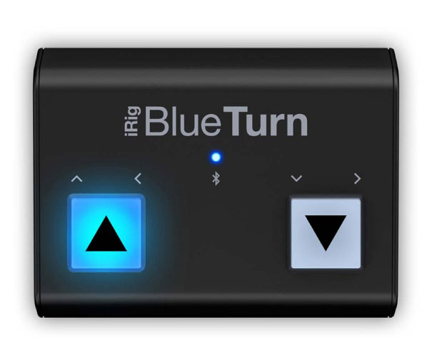 iRig BlueTurn は、ステージでのライブ・パフォーマンス時やスタジオでのレコーディング時に、ハンズ・フリーでお気に入りのアプリやソフトウェアをコントロールするのに最適な Bluetooth 対応フット・ペダルです。動作音を排した2つのバックライト内蔵フット・スイッチにより、標準的なHIDメッセージを送信して、ハンズ・フリーで楽譜のページめくりやプレゼンテーション・スライドの切り替えが可能です。
