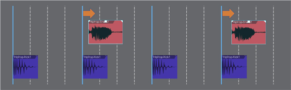 各トラックそれぞれにサンプリング・サウンドを設定するだけで、簡単に4パートの楽曲制作が行えますが、サウンド・ロック機能を使えば、フレーズやノートごとにサンプリング・サウンドを切り替えることができ、1曲の中でほぼ無限の組み合わせで音色が使えます。