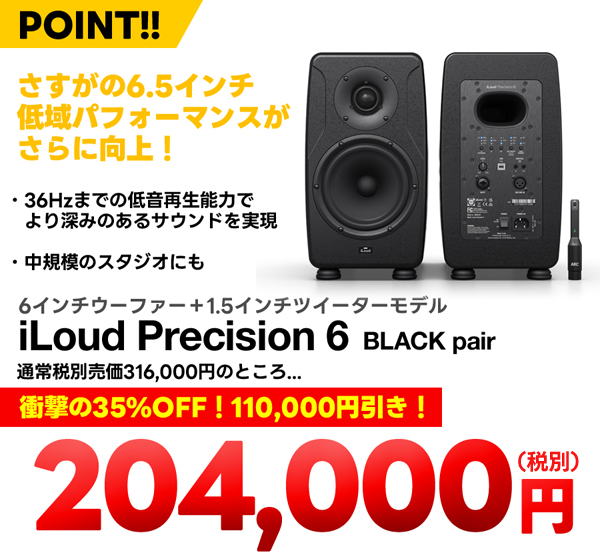 【★1本価格102,000円!ブラックペアのみ通常316,000円→204,000円の11万円以上OFF!さらに別売のリモートコントローラー無料プレゼント!】IK Multimedia/モニタースピーカー/iLoud Precision 6(単品・アンプ内蔵)