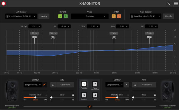 iLoud Precision シリーズには、ARC キャリブレーションによる視覚的確認、調整だけでなく、iLoud Precision 背面パネルに実装されたボタンで詳細なボイシングの調整が可能な Mac / Windows アプリケーション : X-MONITOR が用意されています。X-MONITOR の利用に特別なインターフェイスは必要なく、iLoud Precision 背面の USB ポートを Mac / Windows に接続するだけで、すぐにお使いいただけます。
