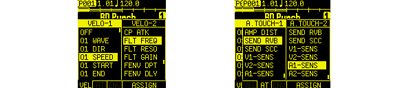 - ベロシティとアフタータッチは、それぞれ2つずつパラメーターを設定可能。