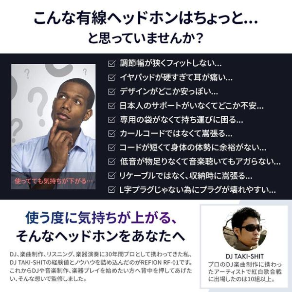 トラックメイカー,DJとしてキャリア20年以上のDJ TAKI-SHIT氏監修によるREFION RF-01 有線ヘッドホン
