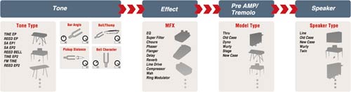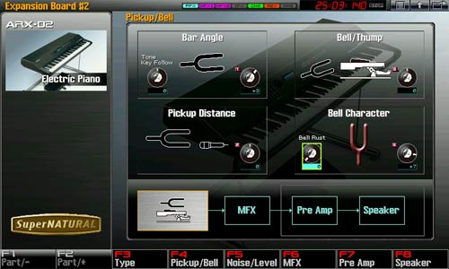 | ■演奏に対する音の反応を追求、極限まで表現力を高めたエレクトリック・ピアノ■ エレピ特有の発音構造を忠実に再現。 自然な音色変化を追求したエレピ専用エクスパンション・ボード。 ▼製品イメージ ![]() ARX-02は、エレクトリック・ピアノの持つ音色変化と音色調整の特性を再現。 専用ユーザー・インターフェースによる快適な操作性を実現しながら、SuperNATURALテクノロジーにより、さらに自然な演奏表現力と細やかなサウンド・メイキングを可能にしています ●エンジニア感覚の精密な音づくり。 ARX-02は、エレクトリック・ピアノの発音構造や音色特性をSuperNATURALにより忠実に再現。 これまでにない、極限までリアルなエレピ・サウンドによる演奏を楽しむことができます。 カスタマイズでは、エレクトリック・ピアノのモデル・タイプはもちろん、トーン・バーとピックアップの距離やトーン・バーの角度、ベルのキャラクター、コンディションによる音色の違いなど、緻密なパラメーター設定が可能。 エレピ専門のエンジニアが行うような感覚で、こだわりのセッティングによるユーザーだけのエレピ音色がつくり出せます ▼Tone Type選択画面 ![]() ▼Pickup/Bell調整画面 ![]() ●アンプ・モデリングによる表現力豊かなサウンド。 ARX-02は、エレクトリック・ピアノ用にチューニングされた5種類のプリアンプを搭載しています。 これにより、音量の強弱によるエレクトリック・ピアノ特有のトーンや歪みなど、従来のサンプリング波形の切り替えでは難しかったスムーズでナチュラルな音色変化を実現。 エレクトリック・ピアノならではの繊細かつダイナミックな演奏表現を可能にします。 また、フェイザーやコーラスなど、エレクトリック・ピアノに最適なマルチ・エフェクトも多数装備。 多彩なキャラクターのエレピ・サウンドをつくることが可能です。 ●インストごとに設定可能なミキサー/エフェクト機能。 ARX-01は、キック、スネアなど、インストごとに音量やパンを細かく設定できる24チャンネルのミキサー機能を装備しています。 また、インストごとにコンプとEQがスタンバイ。 さらに、マルチ・エフェクトやリバーブによる音づくりもできるので、ARX-01のみで、プロフェッショナルなレコーディング・スタジオ・レベルの、きめ細やかなミキシングが可能です。 |