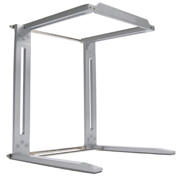 MAGMA LAPTOP-STAND TRAVELERはラップトップPCの設置をサポートする、軽量かつ耐久性に優れた折りたたみ可能なDJ用スタンドです。 折りたたみ時の厚みはラップトップPC程度の薄さのため、運搬の際はバックの隙間などに収納しスペースを有効に活用できる他、複雑な動作無く組み立ても可能なため、時間との戦いが要求されるDJ交代時にも素早くセッティングが可能です。 運搬性を重視した構造ながら、耐久性と安定性も追及されており、DJやライブでの使用に対応する構造となっています。 ラップトップPCだけでなく、各種PC用コントラーの設置にも活用可能な他、持ち運び用のキャリングポーチも付属。折りたたみと展開が簡単に行えるスタンドですので、DJやライブ時非常に適したスタンドといえます。 ■MAGMA LaptopStand Traveler 主な特徴 ・頑丈且つコンパクトに折りたたみ可能な汎用性の高いDJ用スタンド。 ・アルミニウム素材のボディで軽量かつ高い耐久性を実現。 ・12インチから15インチサイズのラップトップPCの設置に対応。 ・Native Instryments Maschine、Novation Launchpad、AKAI MPD18、AKAI APC20などのコントローラーの設置にも対応。 ・折りたたんだ際の厚みは約2cm、重量も約1250gの軽量サイズ。 ・持ち運び用キャリングポーチ付属。 ・スリップ耐性の高いラバー素材を機材設置面に採用。 ※こちらの商品は製作工程上、本体や外箱に若干の汚れ、スリキズなど発生する場合がございますが、使用の際には影響ございません。予めご了承下さい。