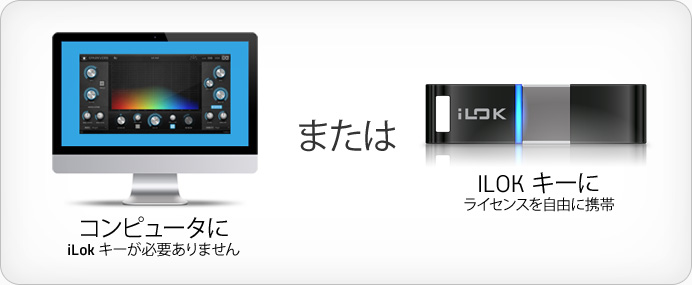 シンプルかつフレキシブルなオーソライゼーション コンピュータ、iLokキー問わず合計3台までのデバイスを同時使用可能のライセンス