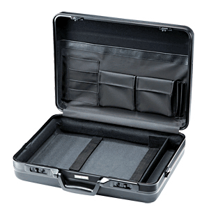 ※蓋内側の書類入れには、重いものを入れないでください。(収納物の目安は約1kgです) 蝶番(ケース底のつなぎ目部分)が破損する恐れがあります。