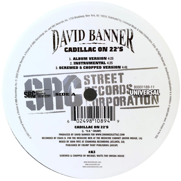 TRACK LIST SIDE A A1 Cadillac On 22's (Album Version) 4:25 A2 Cadillac On 22's (Instrumental) 4:25 A3 Cadillac On 22's (Screwed & Chopped Version) SIDE B B1 Might Getcha (Radio Edit) B2 Might Getcha (Club Version) B3 Might Get...